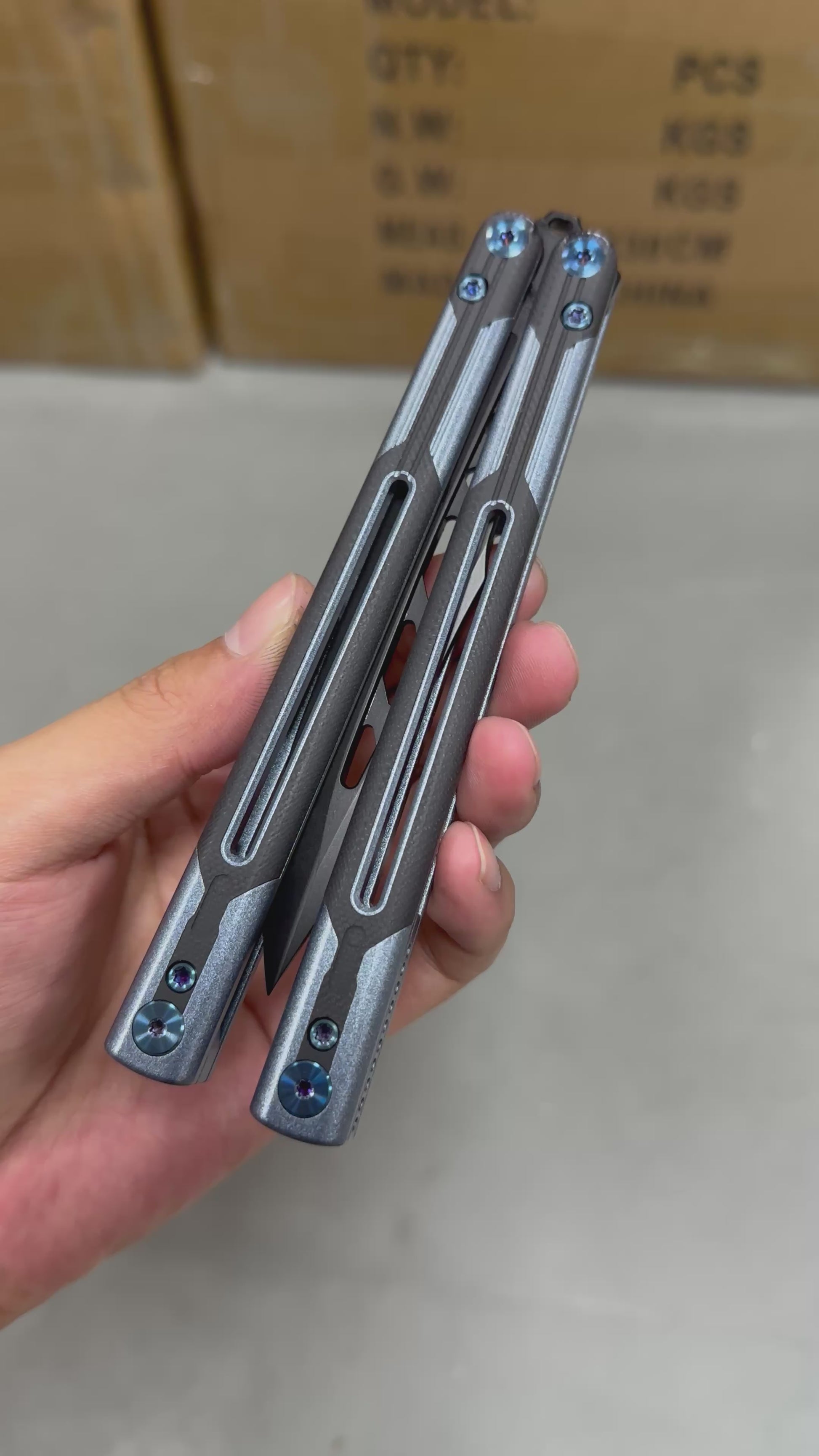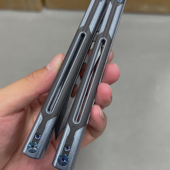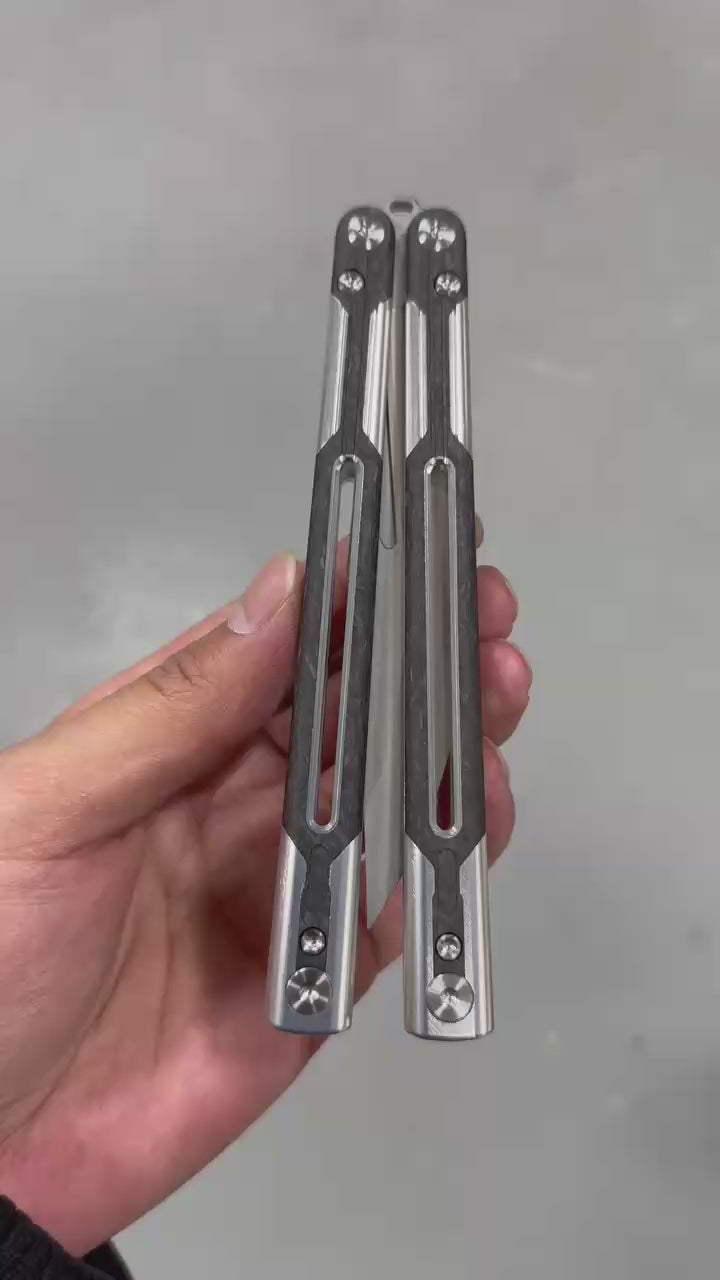 Titus Cygnus Balisong Clone,this is a balisong clone that Titus has developed to continue to improve its game. It uses a 7075 aluminum alloy and G10/carbon fiber scales handle. The blade also has two shapes for you to choose from. Both are fasle edges, but they are a little sharper than the general false edge. It is easier to make it sharp with tools. The false edge blade material is VG10, which is enough to meet the performance needs.